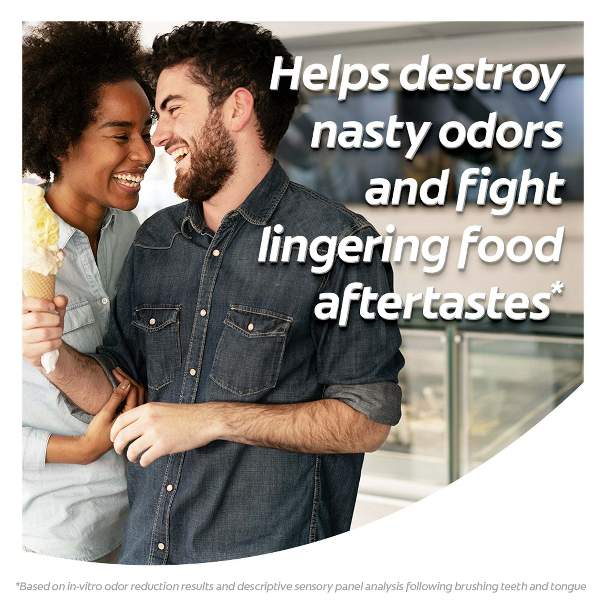 **based on in-vitro odor reduction results and descriptive sensory panel analysis following brushing teeth and tongue