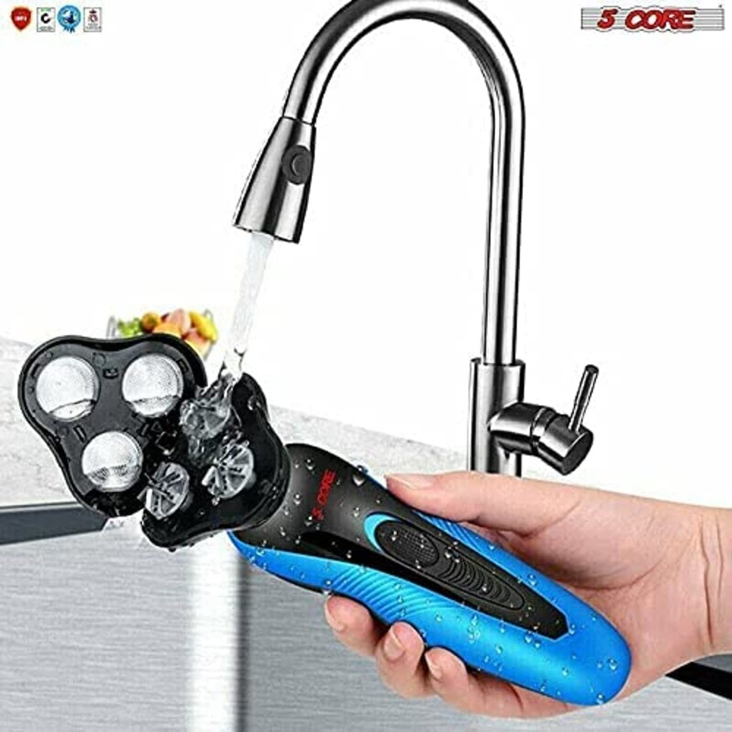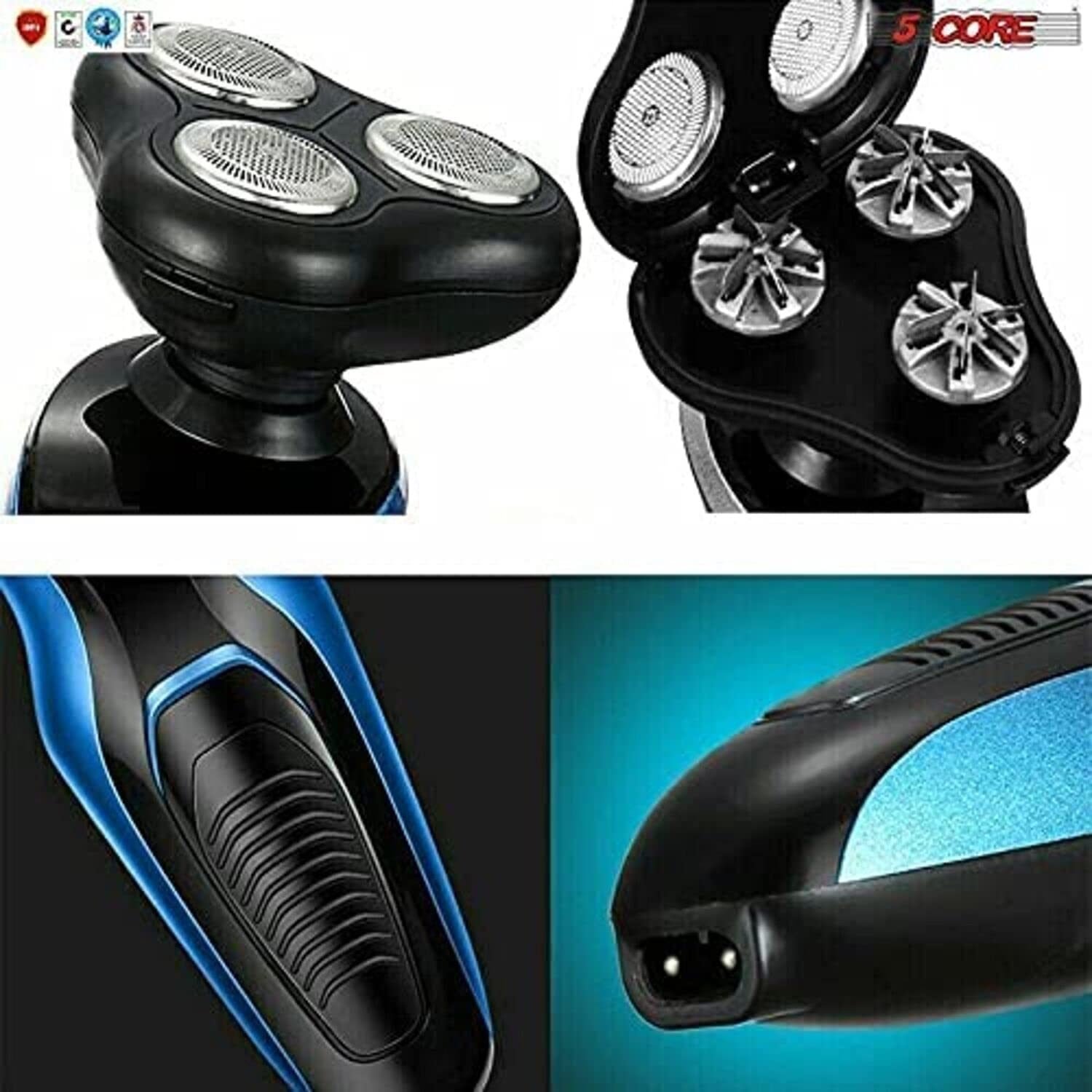 5 Core 4-in-1 Electric Shaver for Men Wet & Dry USB Rechargeable Rotary Waterproof Beard Trimmer, Head Shaver, Nose Hair Trimmer, Plus 1 Facial Cleansing Brush a total Grooming Kit- SHV-4