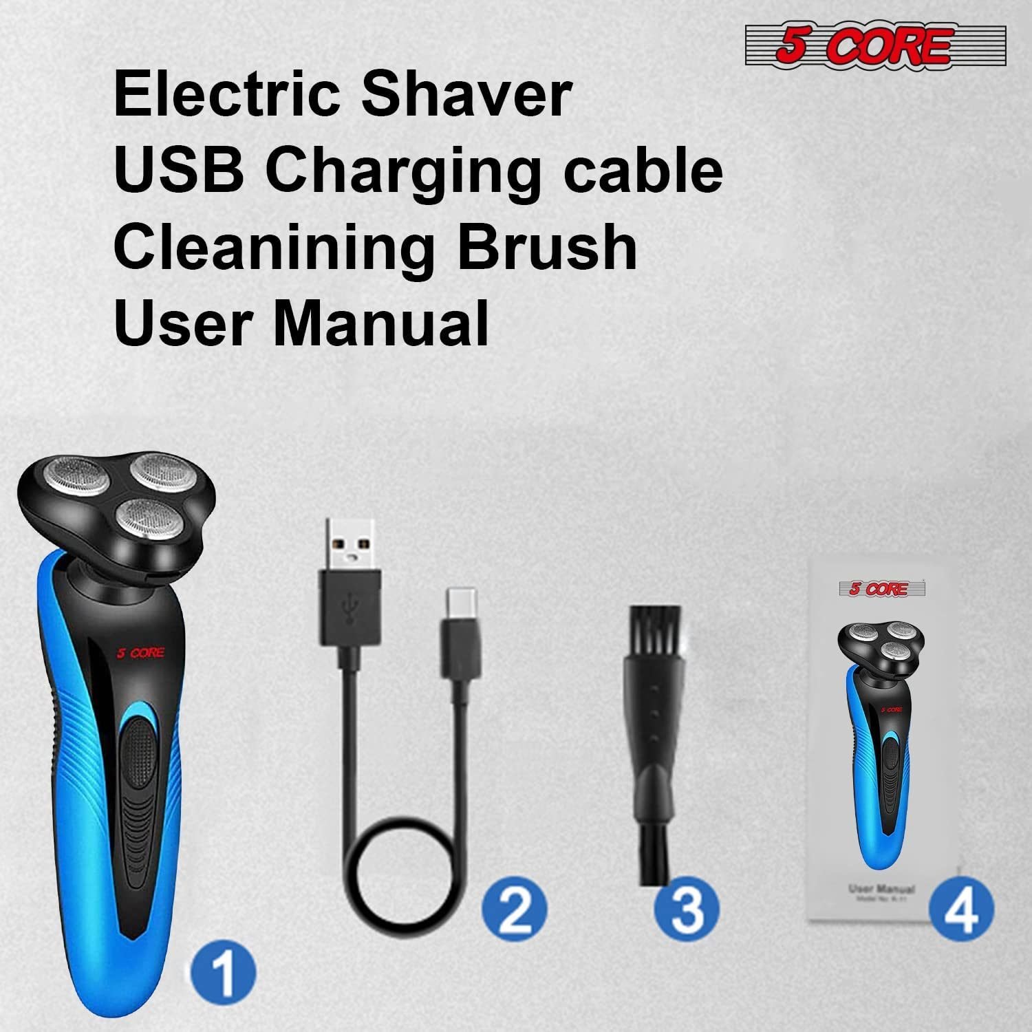 5 Core 4-in-1 Electric Shaver for Men Wet & Dry USB Rechargeable Rotary Waterproof Beard Trimmer; Head Shaver; Nose Hair Trimmer; Plus 1 Facial Cleansing Brush a total Grooming Kit SHV-4