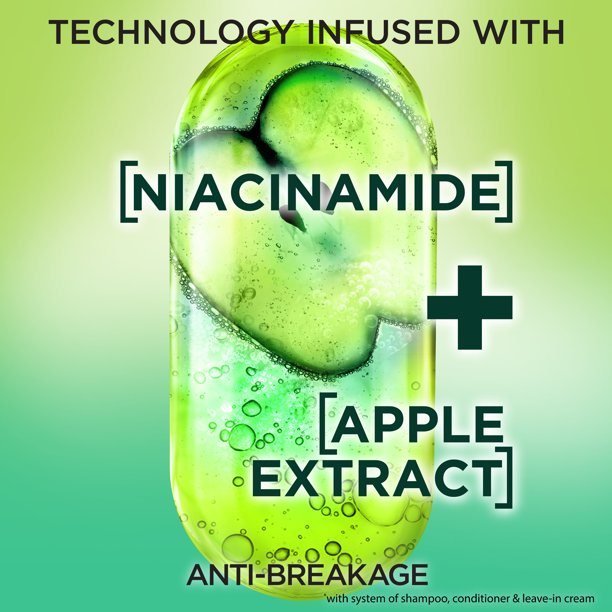 Fructis Grow Strong Shampoo and Conditioner are infused with Apple Extract and Ceramide for stronger; healthier hair. Get up to 3x less breakage with system of shampoo and conditioner. COMMITED TO MAKING GARNIER A GREENER BEAUTY BRAND: As a leading global beauty brand; we aspire to create a positive impact by paving the way towards more and more sustainable beauty that’s accessible to all of us. Additionally; all Garnier products; globally; are officially approved by Cruelty Free International under the Leaping Bunny Programme. *With shampoo and conditioner. **Packaging May Vary