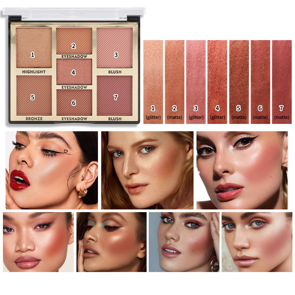 1.Luxurious face makeup. This blush palette 7colors blush to create a perfect healthy glow, also can be used on Contour, Eyeshadow and Lipstick,provide you with a pretty makeup.